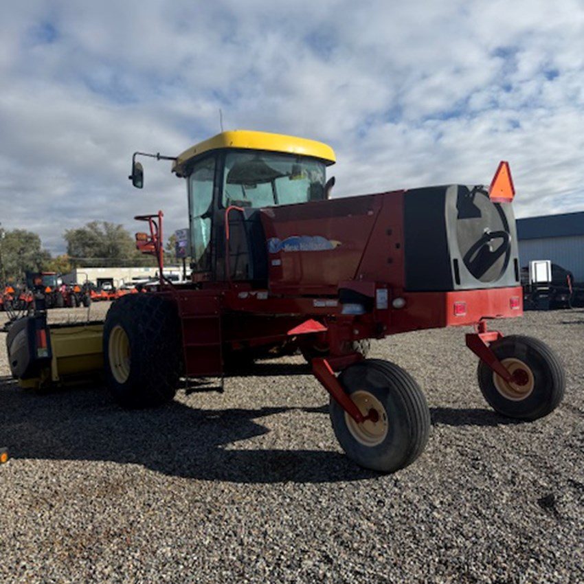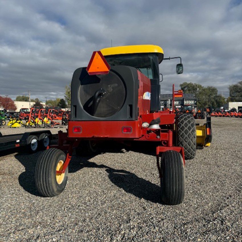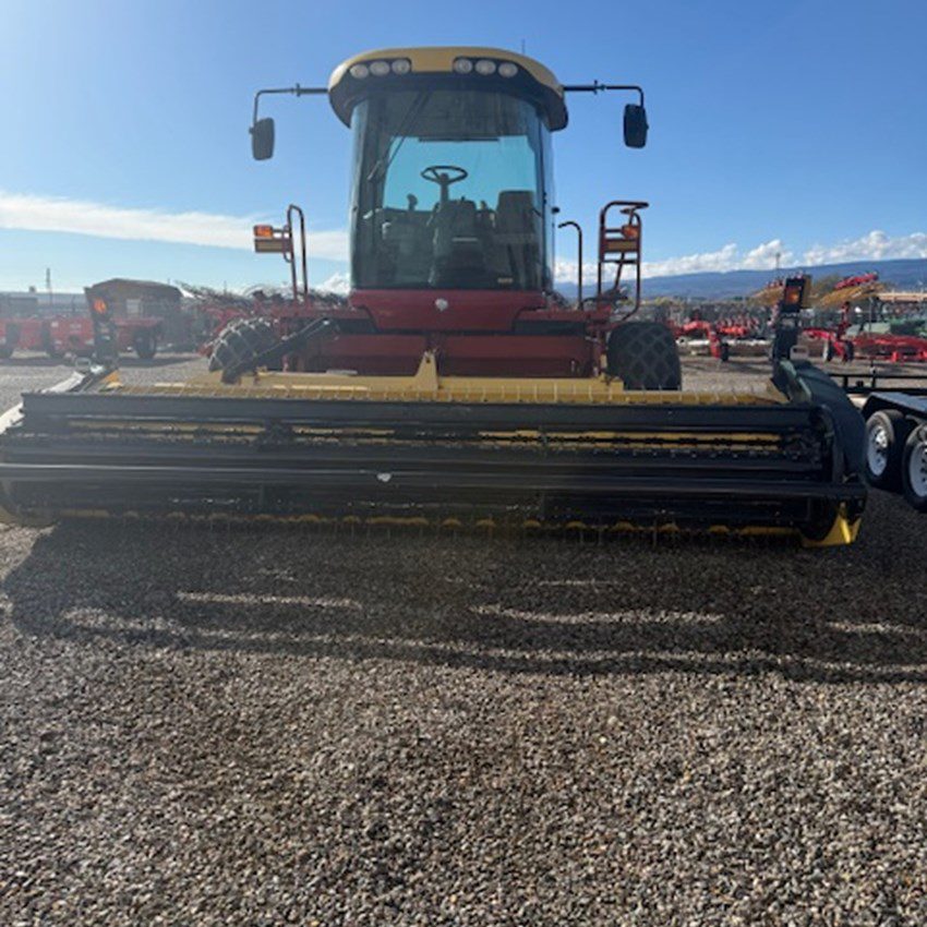 Reliable self-propelled windrower with a 16’ sickle bar header, cab with A/C, and rubber-on-rubber conditioning. Well-maintained with 841 hours, designed for efficient, consistent cutting and conditioning during hay harvest. Ready to go to work and available now in Grand Junction.